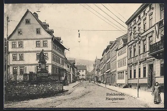 AK Bleicherode, Hauptstrasse mit Denkmal