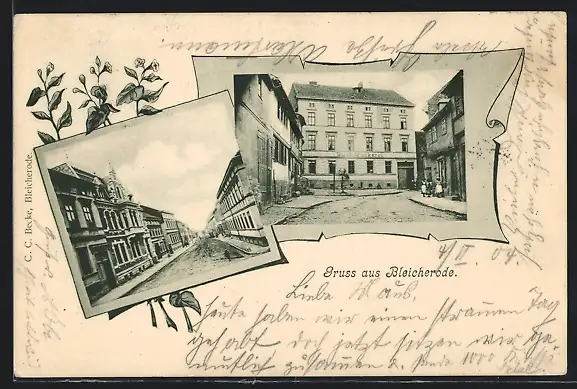 AK Bleicherode, Strassenpartie mit Buchdruckerei, Strassenpartie mit Häuserzeile