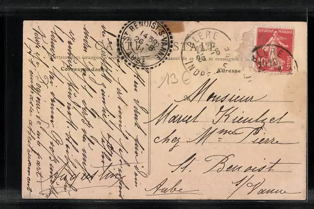 alte Ansichtskarte, gelaufen 1911, rückseitig Klebe- und Papierreste, rückseitig Oberflächenschaden, Stempelspur, guter Zustand