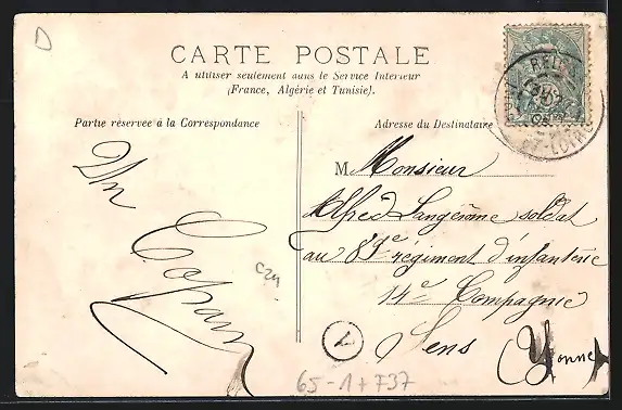 Personenbezogene Daten auf der Rückseite der Karte wurden durch blauen Textmarker unkenntlich gemacht. Die blauen Stellen sind auf die Vorderseite durchgeweicht und wirken sich negativ auf das Postkartenfoto aus