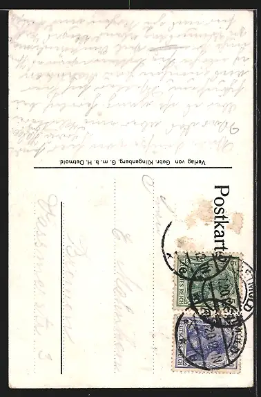 alte Ansichtskarte, gelaufen 1920, Briefmarke entfernt, rückseitig Oberflächenschaden, guter Zustand
