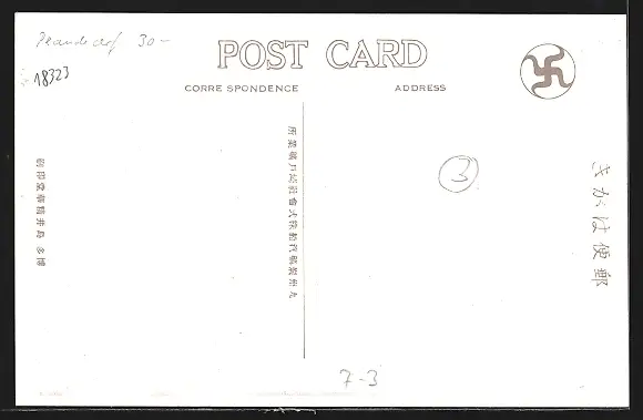 Personenbezogene Daten auf der Rückseite der Karte wurden durch blauen Textmarker unkenntlich gemacht. Die blauen Stellen sind auf die Vorderseite durchgeweicht und wirken sich negativ auf das Postkartenfoto aus