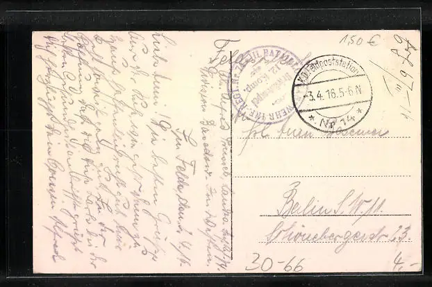 alte Ansichtskarte, gelaufen 1916 als Feldpost, guter Zustand