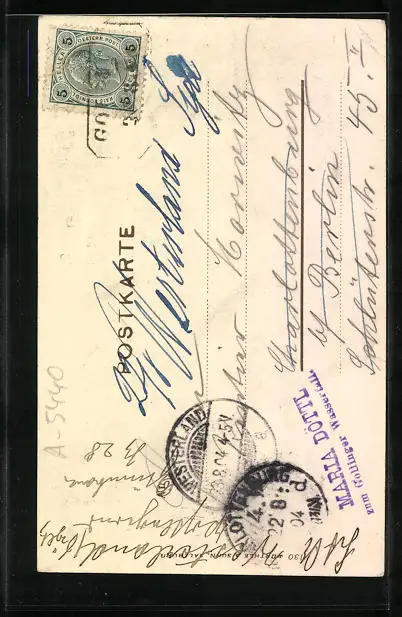 alte Ansichtskarte, gelaufen 1904, Stempelspur, guter Zustand