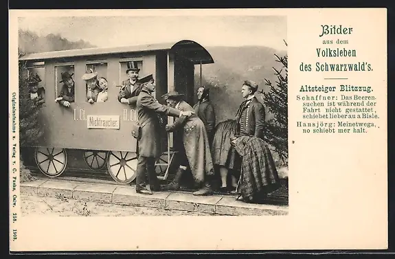 AK Blitzzug und Passagiere in Schwarzwälder Tracht
