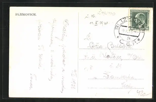 AK Blizkovice, Strassenpartie mit Gebäudeansicht, Strassenpartie mit Geschäft, Ortspartie