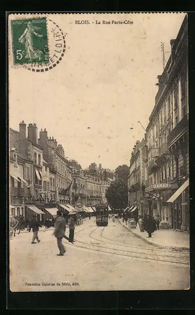 AK Blois, La Rue Porte-Cote, Strassenbahn