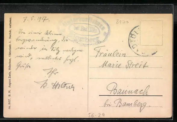 alte Ansichtskarte, gelaufen 1917, Briefmarke entfernt, guter Zustand