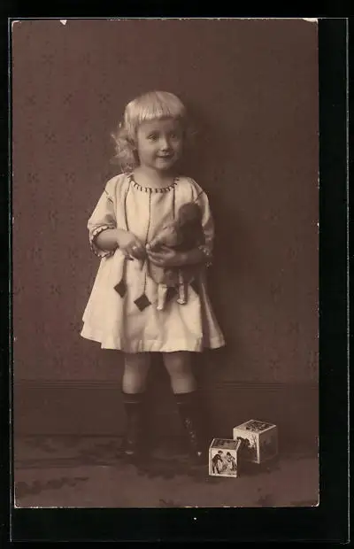 AK Blondes Mädchen mit Puppe
