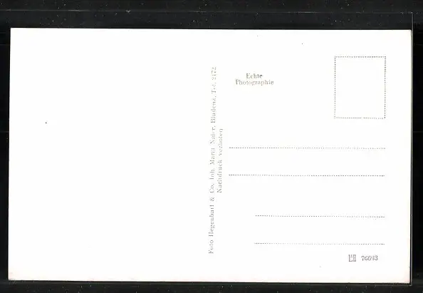 Personenbezogene Daten auf der Rückseite der Karte wurden durch blauen Textmarker unkenntlich gemacht. Die blauen Stellen sind auf die Vorderseite durchgeweicht und wirken sich negativ auf das Postkartenfoto aus