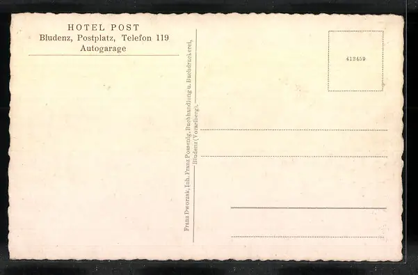Personenbezogene Daten auf der Rückseite der Karte wurden durch blauen Textmarker unkenntlich gemacht. Die blauen Stellen sind auf die Vorderseite durchgeweicht und wirken sich negativ auf das Postkartenfoto aus