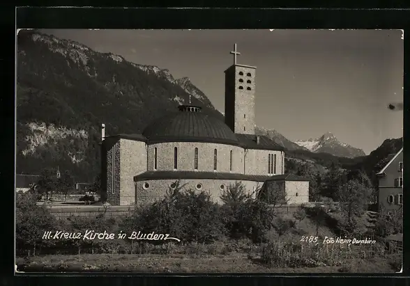 AK Bludenz, Hl. Kreuz-Kirche gegen Gebirgsmassiv