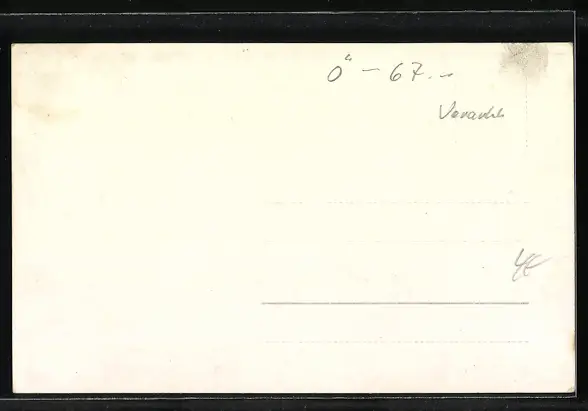 Personenbezogene Daten auf der Rückseite der Karte wurden durch blauen Textmarker unkenntlich gemacht. Die blauen Stellen sind auf die Vorderseite durchgeweicht und wirken sich negativ auf das Postkartenfoto aus
