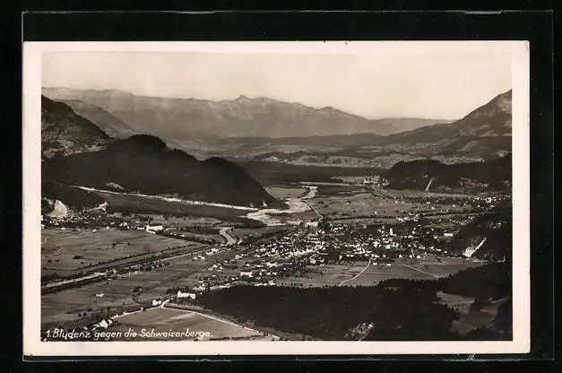 AK Bludenz, Ortsansicht gegen die Schweizerberge