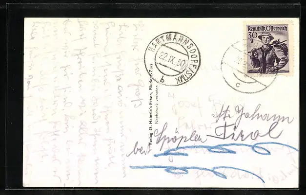 alte Ansichtskarte, gelaufen 1950, Eckknick unten rechts, guter Zustand