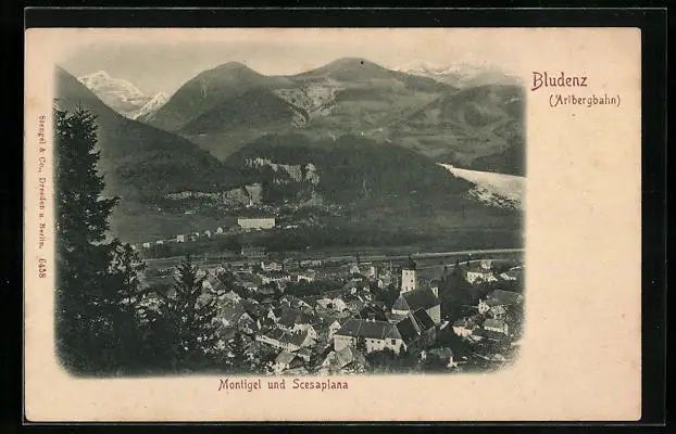 AK Bludenz, Ortsansicht mit Bergpanorama