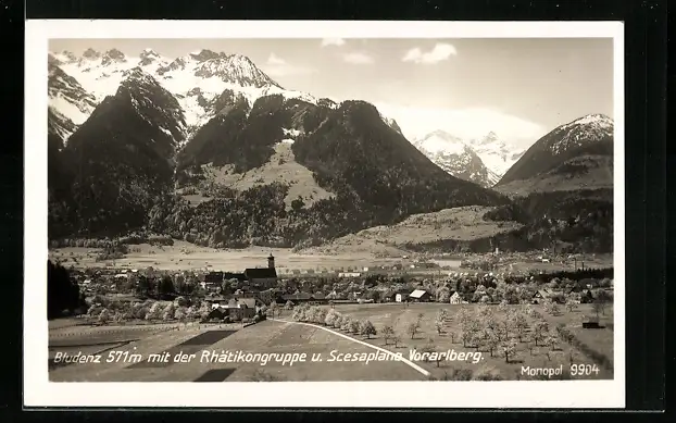 AK Bludenz, Ortsansicht mit Rhätikongruppe und Scesaplane