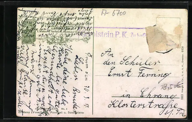 alte Ansichtskarte, gelaufen 1917, guter Zustand