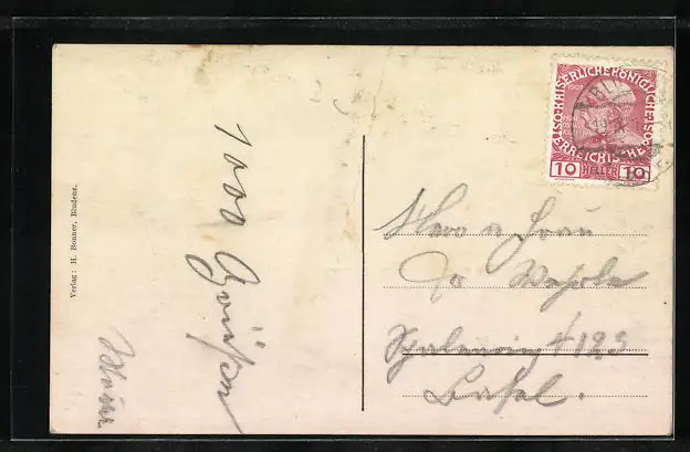 alte Ansichtskarte, gelaufen, Knick in der oberen Kante, guter Zustand