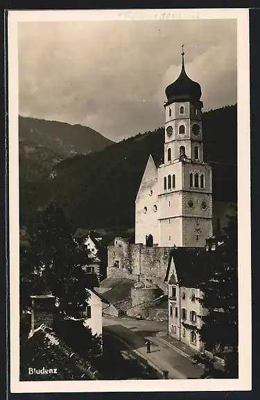 AK Bludenz, Strassenpartie mit Kirche