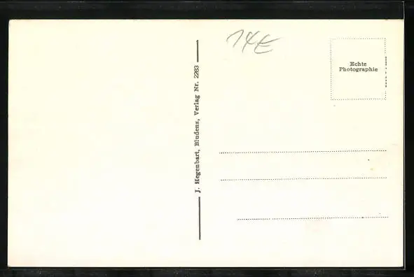 Personenbezogene Daten auf der Rückseite der Karte wurden durch blauen Textmarker unkenntlich gemacht. Die blauen Stellen sind auf die Vorderseite durchgeweicht und wirken sich negativ auf das Postkartenfoto aus