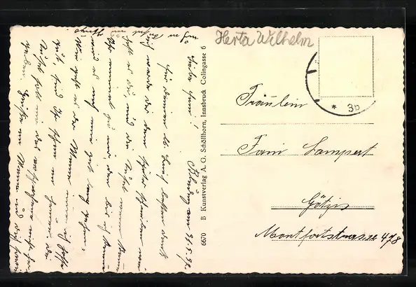 alte Ansichtskarte, gelaufen 1937, Briefmarke entfernt, guter Zustand