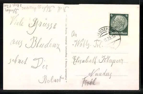 alte Ansichtskarte, gelaufen 1939, guter Zustand