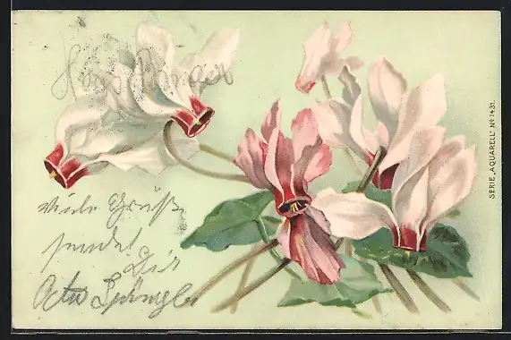 AK Blühende Alpenveilchen