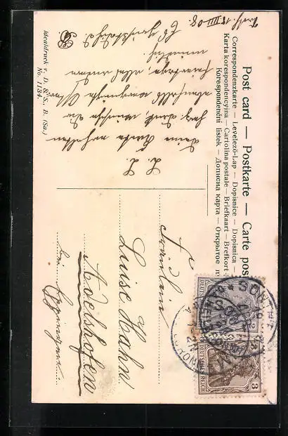 alte Ansichtskarte, gelaufen 1908, guter Zustand