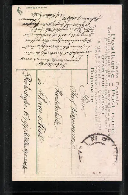 alte Ansichtskarte, gelaufen, Briefmarke entfernt, Eckknick unten li., guter Zustand