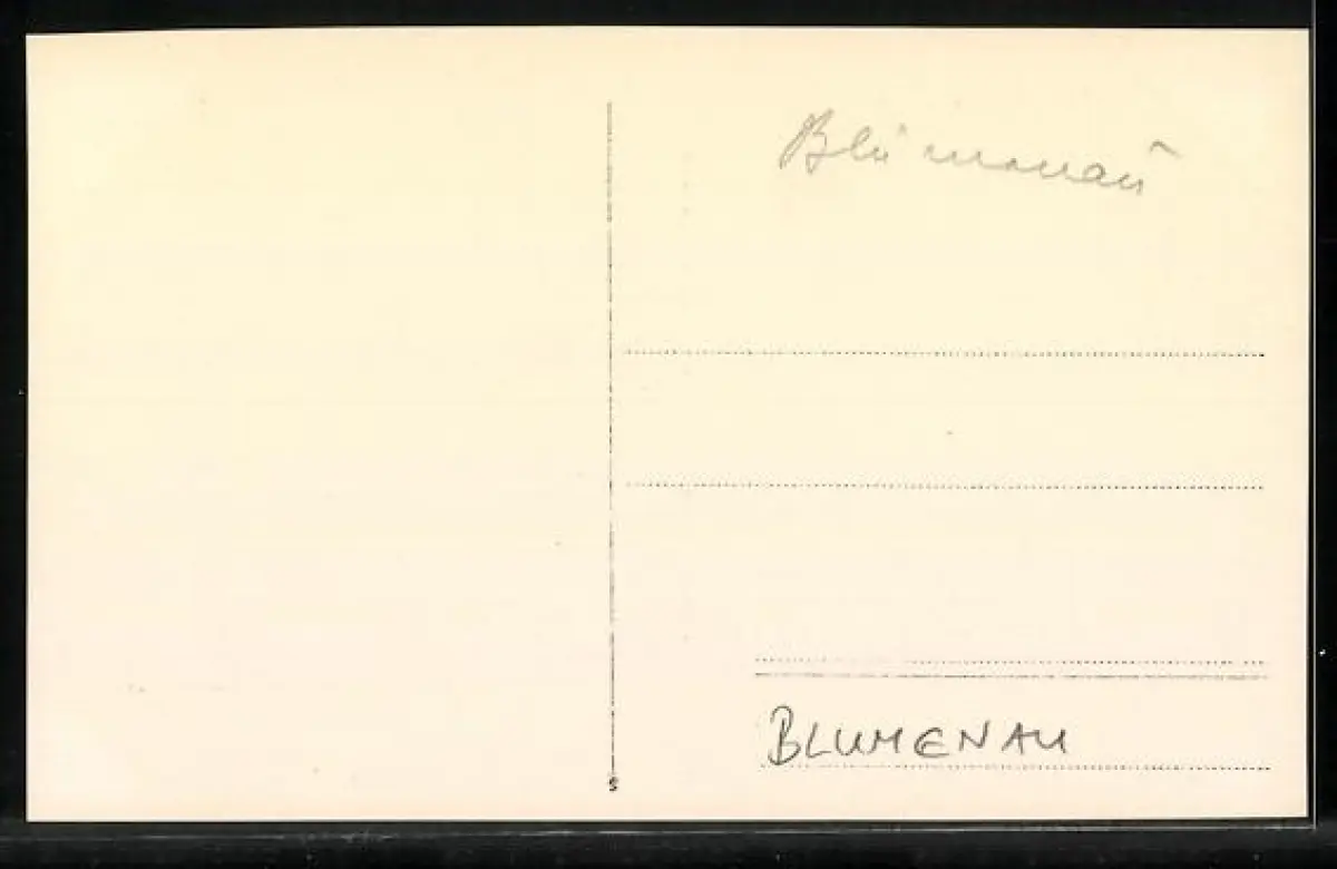 Personenbezogene Daten auf der Rückseite der Karte wurden durch blauen Textmarker unkenntlich gemacht. Die blauen Stellen sind auf die Vorderseite durchgeweicht und wirken sich negativ auf das Postkartenfoto aus
