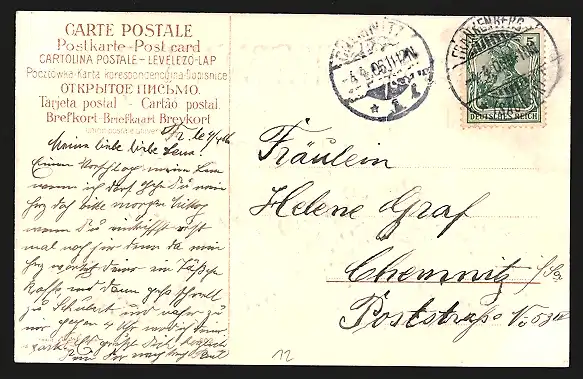 alte Ansichtskarte, gelaufen 1906, Stempelspur, guter Zustand