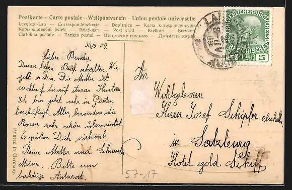 alte Ansichtskarte, gelaufen 1909, guter Zustand