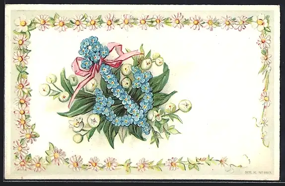 AK Blumenbild, blaue Blumen in Form eines Ankers