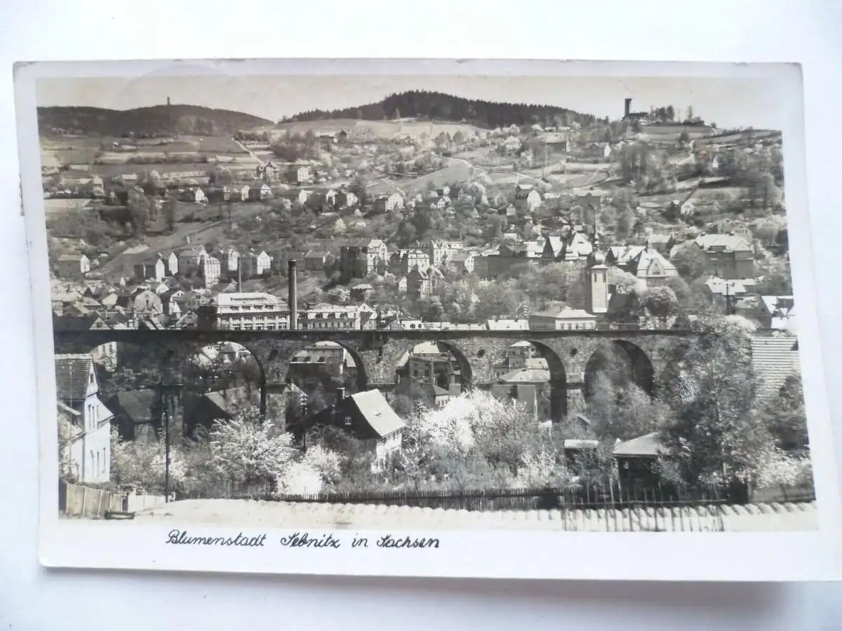 AK Blumenstadt Sebnitz Stadtansicht mit Viadukt