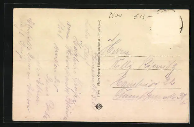 alte Ansichtskarte, gelaufen, Briefmarke entfernt, rückseitig Oberflächenschaden, guter Zustand