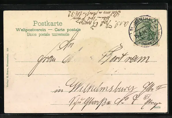 gelaufen 1914, rückseitig Klebe- und Papierreste, guter Zustand