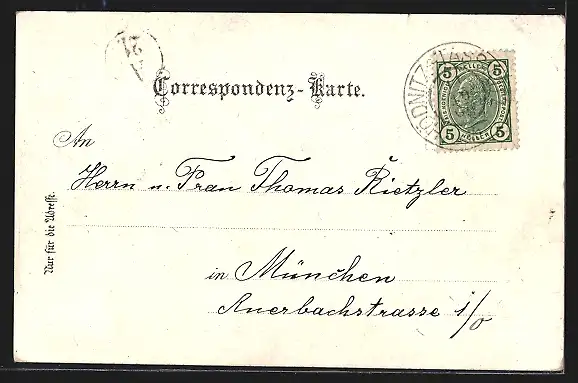 alte Ansichtskarte, gelaufen 1906, Oberflächenschaden oberer Rand links, guter Zustand