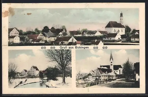 AK Bobingen, Kirche, Ortsansicht und Flusspartie