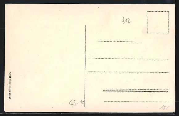 Personenbezogene Daten auf der Rückseite der Karte wurden durch blauen Textmarker unkenntlich gemacht. Die blauen Stellen sind auf die Vorderseite durchgeweicht und wirken sich negativ auf das Postkartenfoto aus