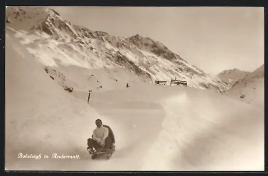 AK Bobsleigh in Andermatt, Rodler auf dem Schlitten