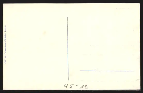 Personenbezogene Daten auf der Rückseite der Karte wurden durch blauen Textmarker unkenntlich gemacht. Die blauen Stellen sind auf die Vorderseite durchgeweicht und wirken sich negativ auf das Postkartenfoto aus