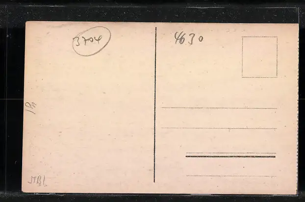 Personenbezogene Daten auf der Rückseite der Karte wurden durch blauen Textmarker unkenntlich gemacht. Die blauen Stellen sind auf die Vorderseite durchgeweicht und wirken sich negativ auf das Postkartenfoto aus