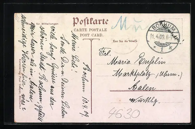 alte Ansichtskarte, gelaufen 1909, guter Zustand