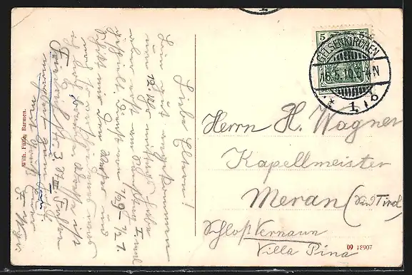 gelaufen 1910, Eckknicke li. oben u. re., guter Zustand