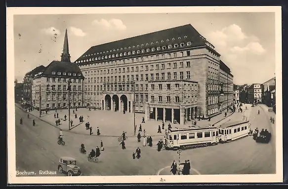 AK Bochum, Rathaus mit Strassenbahn