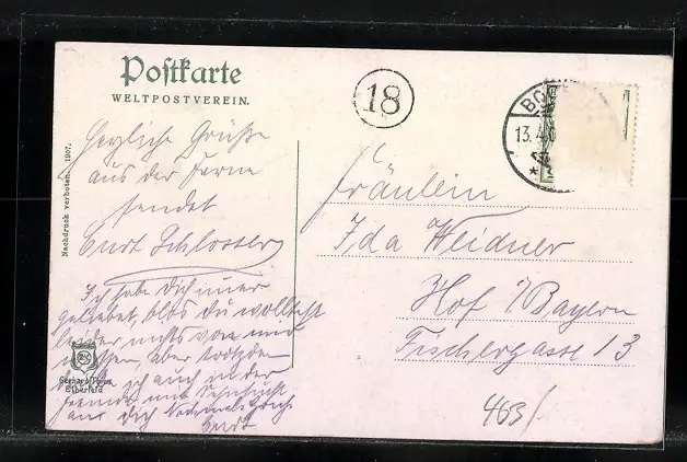 alte Ansichtskarte, gelaufen, Briefmarke entfernt, guter Zustand