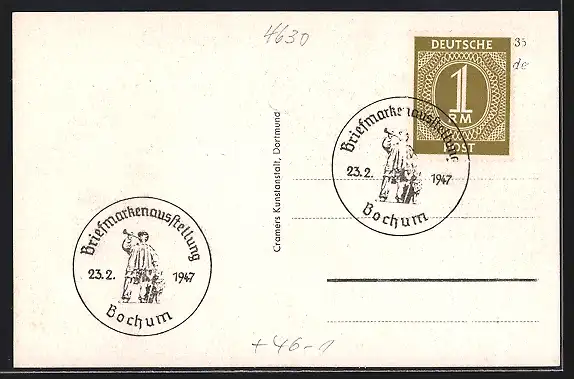 Personenbezogene Daten auf der Rückseite der Karte wurden durch blauen Textmarker unkenntlich gemacht. Die blauen Stellen sind auf die Vorderseite durchgeweicht und wirken sich negativ auf das Postkartenfoto aus