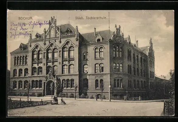 AK Bochum, Strassenpartie mit Städtischer Töchterschule