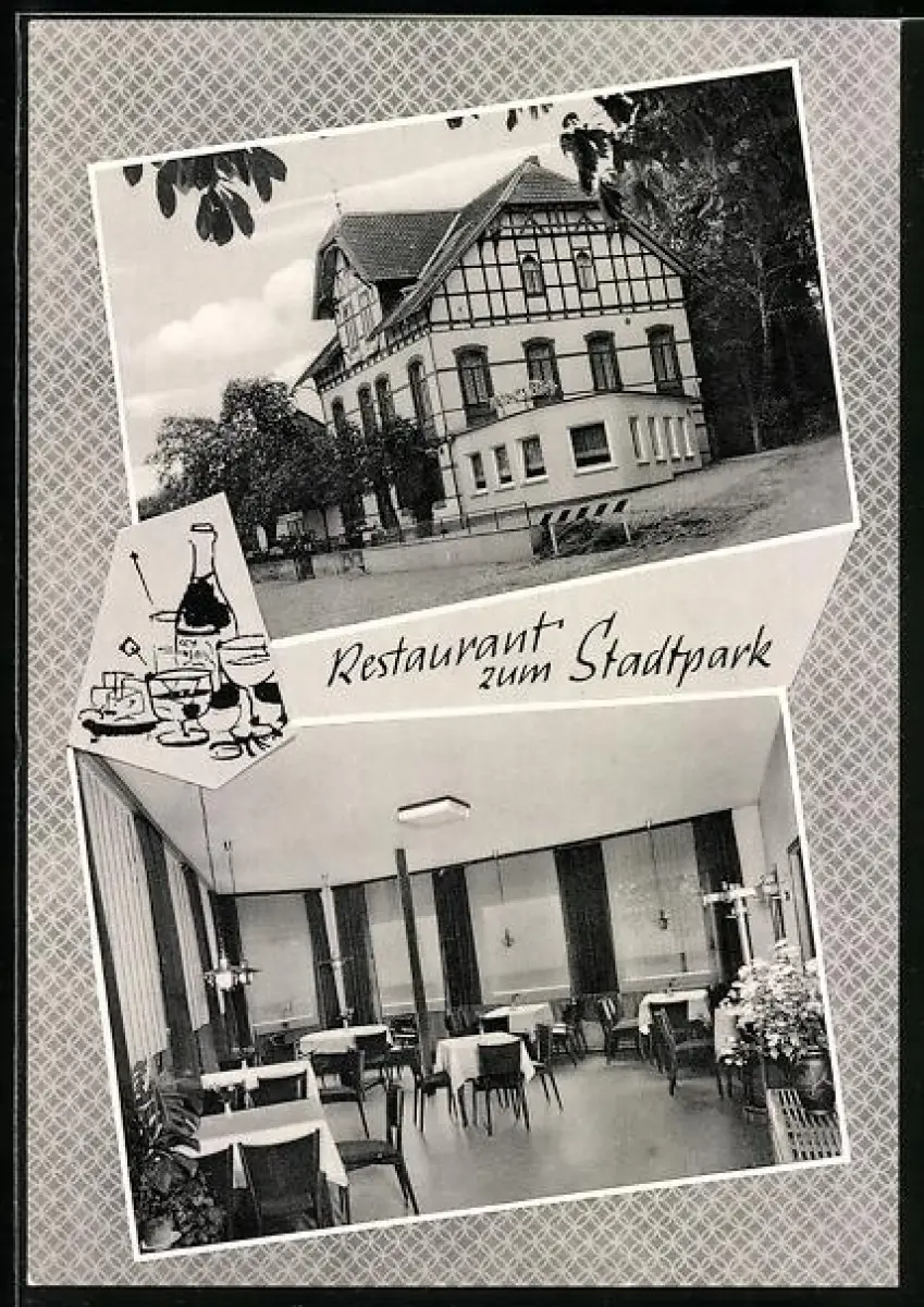 AK Bockenem, Das Restaurant zum Stadtpark v. W. Linne, mit Speisesaal